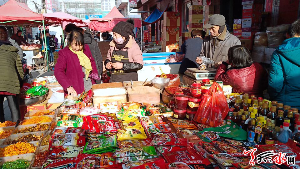 雖然天寒地凍,但年集已拉開了新春喜慶紅火交易的“交響曲”。熱鬧的集市人頭涌動,門庭若市,年集上的商品琳瑯滿目,應有盡有,年味十足。為了犒勞一年的辛勞,市民裹挾在熙熙攘攘的人流中,看了東家逛西家,在討價還價的聲浪中,尋找著自己滿意的年貨,在小販喧囂的叫賣聲中感受著濃濃的年味,在選購年貨的愜意中體味新年即將來臨的那份喜悅和滿足。