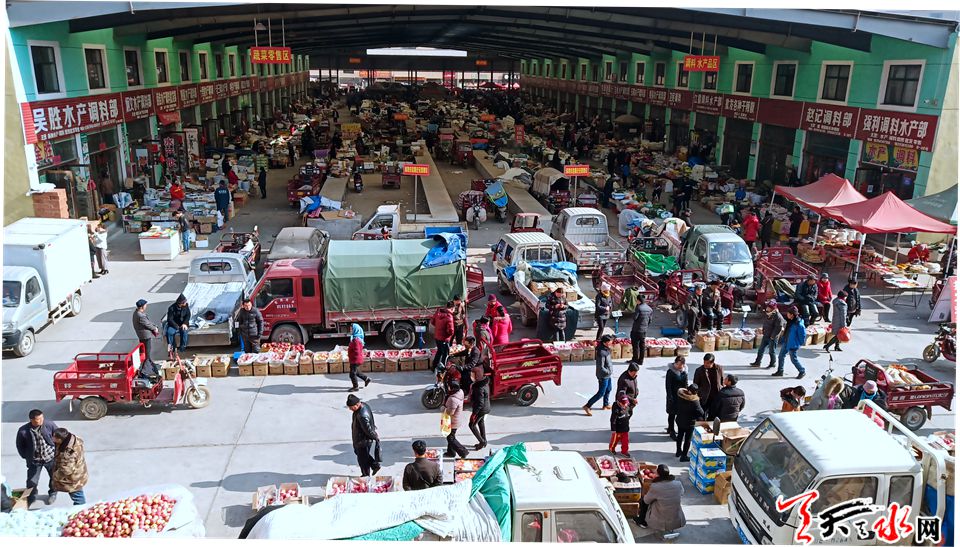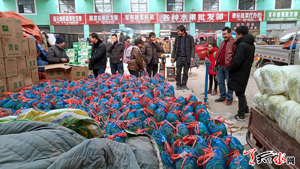 在國家級洛門蔬菜批發(fā)市場,大宗蔬菜、水果和武山的各種農(nóng)副產(chǎn)品銷售紅火,南來北往的車流、人流在這里匯聚,購置年貨的熱鬧場景在新年的推波助瀾下迎來了購銷兩旺的火熱場景。