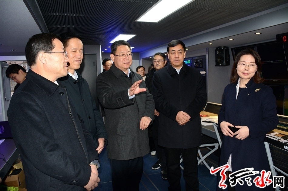 ????天天天水網(wǎng)訊【全媒體記者馬放】1月30日下午,天水市委常委、宣傳部部長張建杰,市人大常委會副主任蒲朝暉,副市長逯克宗,市政協(xié)副主席蘇定武一行到天水廣播電視臺新址,指導“大美天水幸福年”----2019天水市春節(jié)聯(lián)歡晚會錄制工作,看望慰問演職人員,并向他們致以新春的祝福。