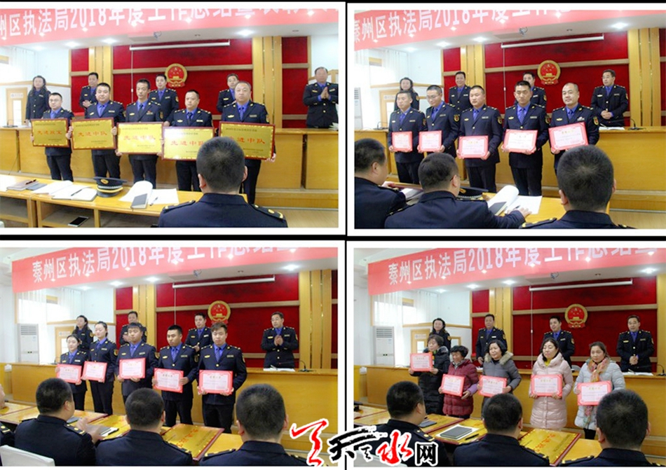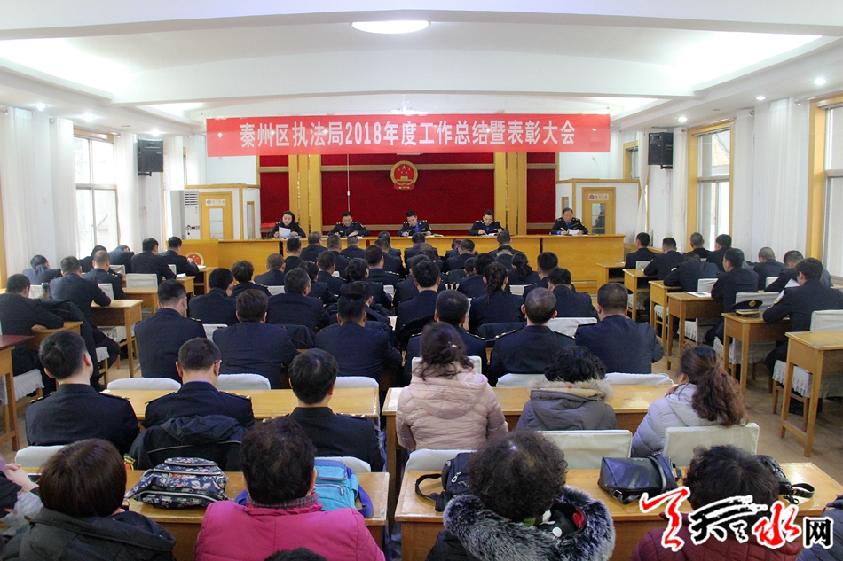 天天天水網(wǎng)訊 1月30日下午,秦州區(qū)執(zhí)法局召開2018年度工作總結暨表彰大會,會上對2018年度城市管理工作中涌現(xiàn)出的先進集體、先進個人、優(yōu)秀協(xié)管員和公益性崗位人員、優(yōu)秀辦案能手進行了表彰獎勵,通報了2018年目標管理責任書考核結果和優(yōu)秀案卷表彰決定。會議號召全體執(zhí)法人員要以先進為榜樣,總結經(jīng)驗、學習先進、再接再厲、奮發(fā)努力,在各自的崗位上做出新的、更優(yōu)異的貢獻。最后局黨組書記、局長王禳虎同志總結了2018年工作,對2019年工作進行了安排部署。
