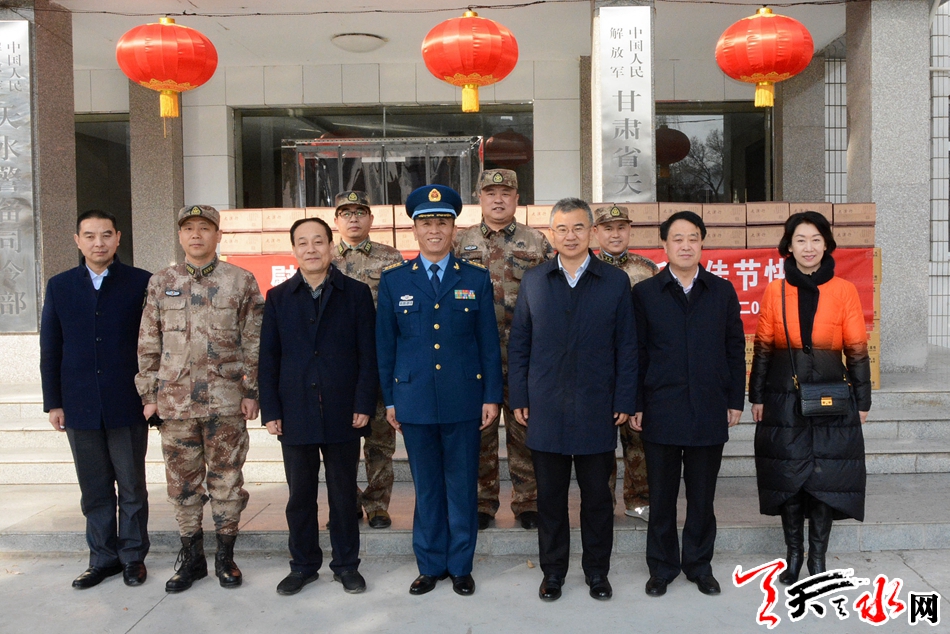 天天天水網(wǎng)訊【全媒體記者馬哲】1月31日,市委常委、常務(wù)副市長趙四輩,市政協(xié)副主席郭明興帶領(lǐng)相關(guān)部門負(fù)責(zé)人,赴天水預(yù)備役旅、天水軍分區(qū)、武警天水支隊、省軍區(qū)干休所,親切看望慰問駐市部隊,為部隊官兵送去新春的問候和祝福,軍地雙方共迎新春,共話雙擁共建。