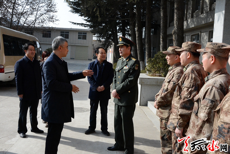 在武警天水支隊,趙四輩向全體武警官兵致以新春的問候。希望駐市武警官兵在新的一年繼續(xù)發(fā)揚能打硬仗、能打勝仗的優(yōu)良傳統(tǒng),努力打造一支拉得出、沖得上、打得贏的武警隊伍,在經(jīng)濟發(fā)展、社會穩(wěn)定、民生保障、應(yīng)急搶險等方面沖鋒陷陣、再立新功,為地方經(jīng)濟發(fā)展、社會和諧作出新的更大貢獻。市委、市政府將全力支持武警部隊建設(shè),積極幫助部隊解決各種困難和問題,為武警部隊發(fā)展創(chuàng)造良好的條件,與武警部隊共同開創(chuàng)軍地融合發(fā)展新局面。