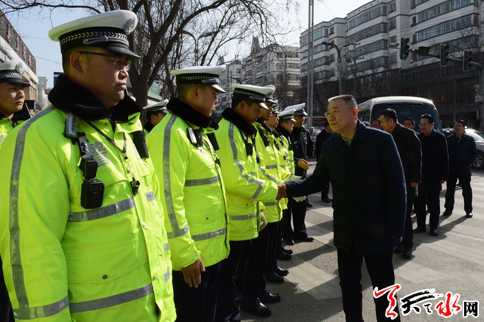 在秦州區(qū)泰山路口交警執(zhí)勤點(diǎn),王銳看望慰問了正在節(jié)日保暢執(zhí)勤的一線交警。王銳說,春節(jié)期間,天水將迎來旅游和群眾返鄉(xiāng)高峰,人流、車流不斷增加,全市廣大公安交警長(zhǎng)年堅(jiān)守路面一線、任勞任怨,默默奉獻(xiàn),特別辛苦。希望全體公安交警繼續(xù)站好崗、服好務(wù),全力以赴為人民群眾創(chuàng)造更加暢通、安全的交通環(huán)境?! ?/p>