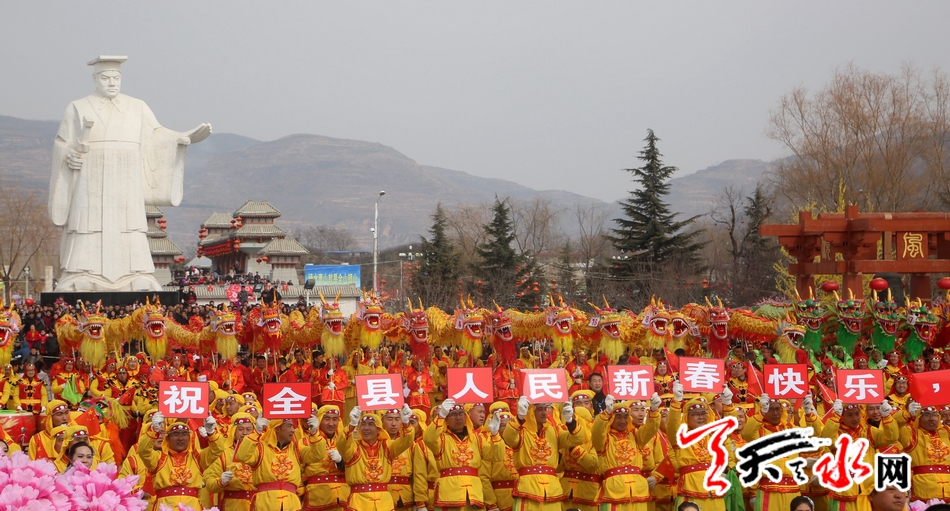 ????瑞歌歡舞慶盛世,龍騰獅舞送吉祥。農(nóng)歷正月初一,清水縣在軒轅廣場隆重舉辦2019(己亥)年賀新春?拜大年系列文化活動(dòng),放歌改革開放四十周年,喝彩昂揚(yáng)奮進(jìn)的新時(shí)代,慶祝新中國成立70周年,也為清水實(shí)現(xiàn)整縣脫貧摘帽凝聚強(qiáng)大的精神力量。劉天波、周偉東、秦永斌、張煒、宋賢雄、畢德祥、王懷珍、馬小平、曹鳳娥等四大組織在家領(lǐng)導(dǎo)與上萬名城鄉(xiāng)群眾一道觀看了精彩的文藝演出。清水縣這次賀新春?拜大年系列文化活動(dòng)演出共分龍騰盛世、獅鬧新春、鼓振雄風(fēng)、行穩(wěn)致遠(yuǎn)、歌唱祖國等幾個(gè)篇章。