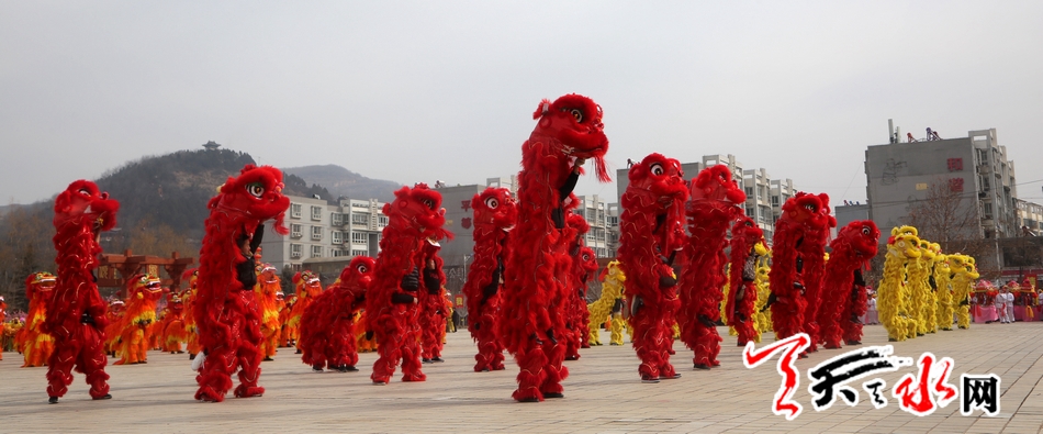 ????獅鬧新春環(huán)節(jié),70隊(duì)大、小獅子騰躍起舞,踢跳翻蹬,立臥滾抖,步伐矯健、活力四射,展現(xiàn)了全縣干部職工奮勇爭先、不甘人后的工作作風(fēng)和奮發(fā)有為、昂揚(yáng)向上的良好風(fēng)貌,也展現(xiàn)著清水在經(jīng)濟(jì)文化各項(xiàng)事業(yè)建設(shè)方面取得的不凡成就!