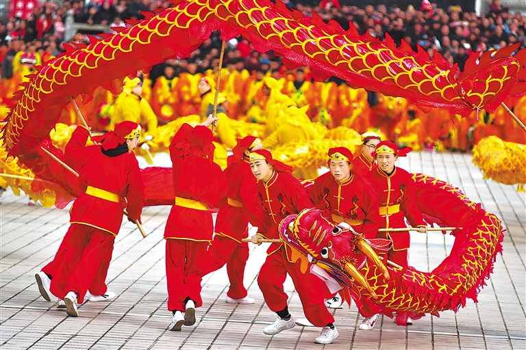 2月5日,清水縣賀新春·拜大年系列文化活動在軒轅廣場精彩上演。龍騰獅舞、鑼鼓震天,讓年味更濃,讓精神振奮,進(jìn)一步凝聚人心,為清水實現(xiàn)整縣脫貧摘帽鼓勁加油。新甘肅·甘肅日報記者?高?檣
