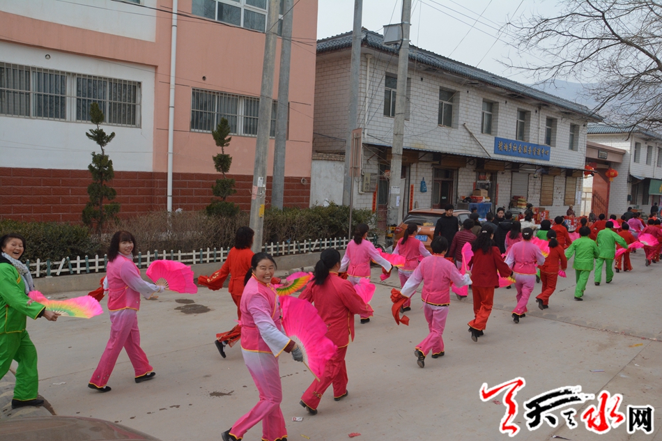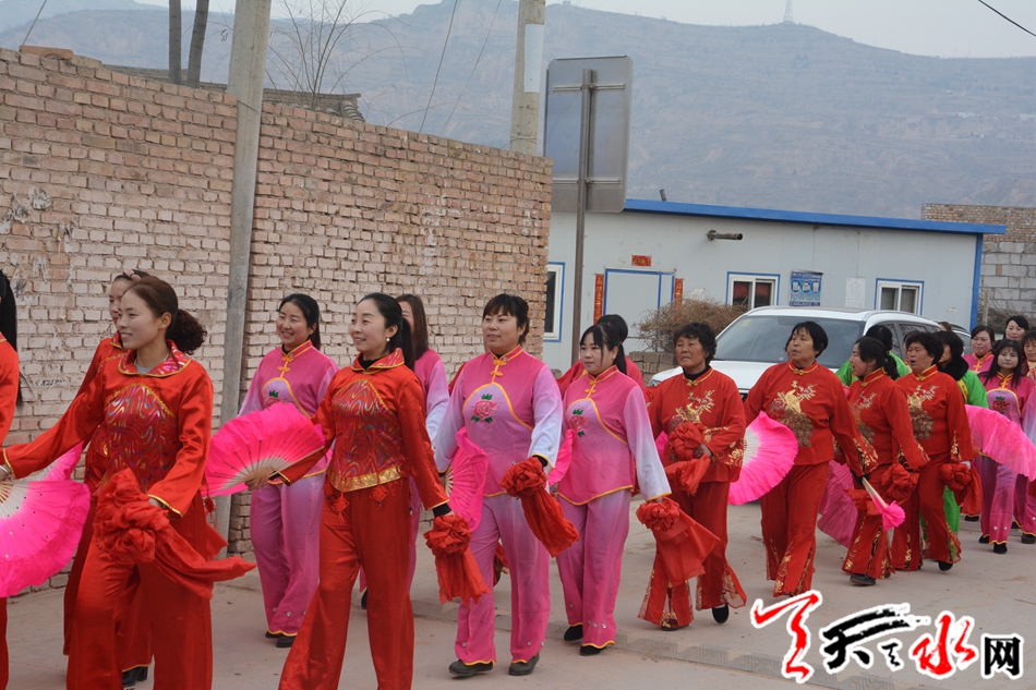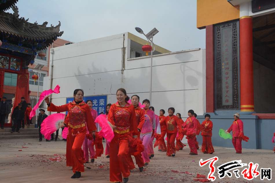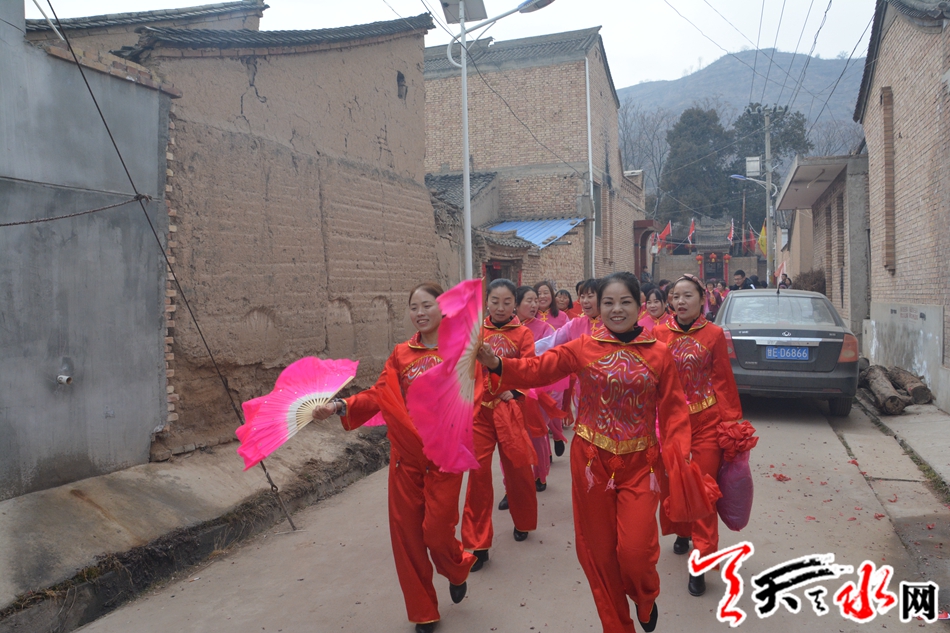 天天天水網(wǎng)訊(記者 羅雙紅)2月5日,己亥年正月初一,鑼鼓聲、嗩吶聲、歡呼聲打破了麥積區(qū)琥珀鎮(zhèn)羅家村的寧靜,小媳婦、老大媽穿著火紅的襯衫,拿著花扇,在這萬家團(tuán)圓的新春里,開始了火紅的秧歌舞。