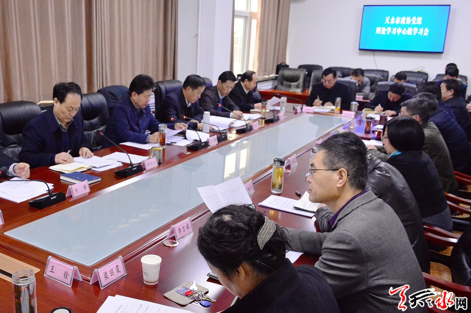 天天天水網(wǎng)訊【全媒體記者馬放】2月13日上午,市政協(xié)黨組書記、主席張明泰主持召開市政協(xié)黨組理論學(xué)習(xí)中心組學(xué)習(xí)會。市政協(xié)黨組成員蘇定武、郭明興、唐宏偉、劉鋒、賈忠慧出席會議。