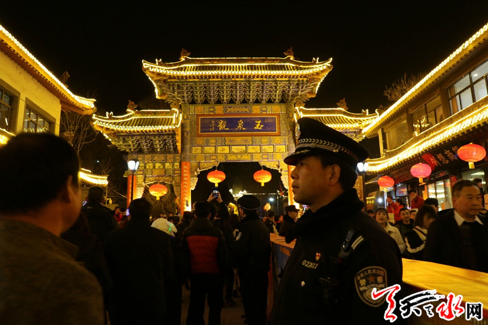 2月12日晚至13日(正月初八至初九),天水市秦州區(qū)玉泉觀又一次迎來了盛大的朝觀廟會。玉泉觀上人山人海,人們心懷虔誠,扶老攜幼從四面八方涌向玉泉觀祈福納祥,熱鬧非凡。此次“上九朝觀”年俗文化活動參與人數多、活動范圍廣、持續(xù)時間長,共有十余萬群眾自發(fā)性上香祈福,安保任務艱巨繁重。