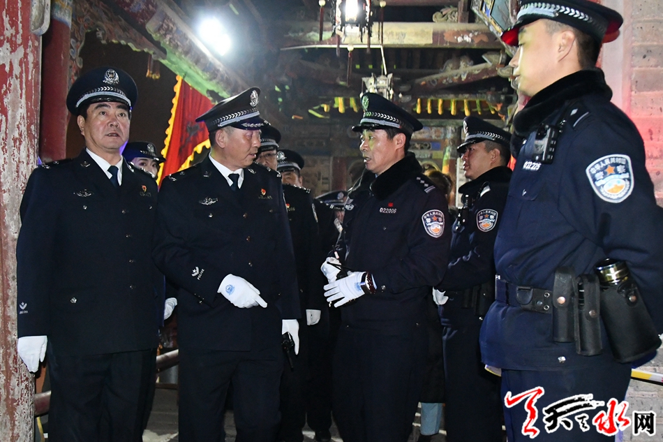 活動期間,副市長、市公安局局長馬瑛,市公安局黨委委員、副局長霍寶珊、肖勇及交警支隊支隊長柳潤泰,秦州區(qū)副區(qū)長、公安分局局長馬小軍等深入一線,靠前指揮。市、區(qū)兩級公安機關組織 800余名警力,全力投入安保工作。各參戰(zhàn)單位按照部署要求,從嚴落實入園安檢、重點部位警戒、現場保衛(wèi)等措施,加大動態(tài)管控、分流引導、治安巡防力度,強化交通指揮、消防戰(zhàn)備、應急備勤工作,保證各項安保措施無縫對接、高效運轉。各級指揮員、戰(zhàn)斗員不畏嚴寒,堅持一線作戰(zhàn),全力做好安保工作,熱情主動服務引導群眾,確保了玉泉觀進香祈福活動的安全有序。全體參戰(zhàn)民警和武警官兵團結協(xié)作,主動作為,忠誠履職,連續(xù)奮戰(zhàn)6個多小時,以高度負責的態(tài)度、嚴謹細致的作風、敢于攻堅的精神、嚴整規(guī)范的風紀,高效履職、團結戰(zhàn)斗、文明執(zhí)勤,圓滿地完成了安保任務,使整個活動秩序井然,未發(fā)生安全事件和事故,受到了社會各界的一直好評和贊譽。