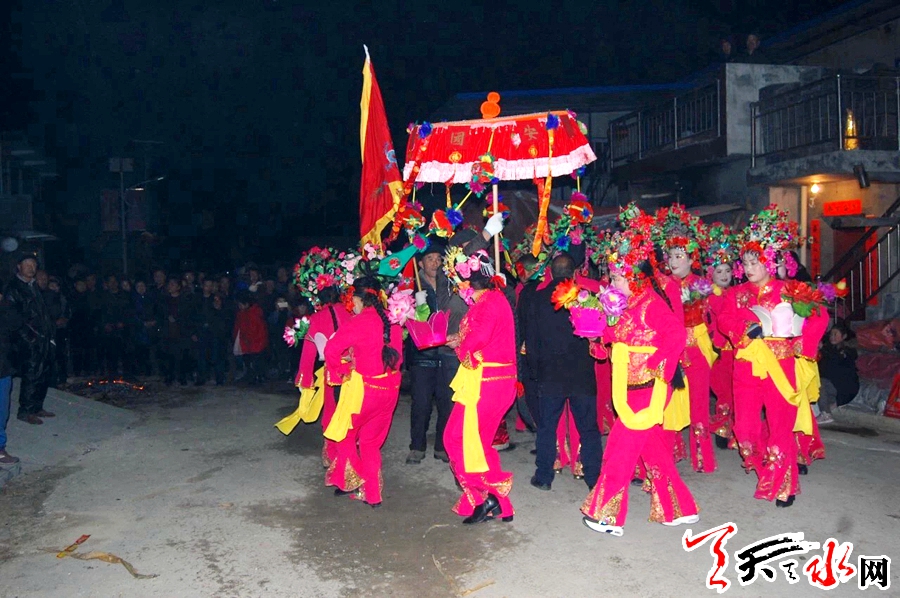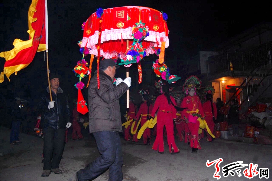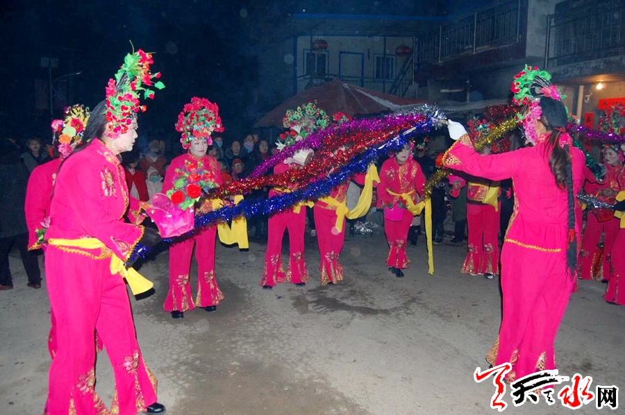 黑社火,顧名思義就是晚上耍演的社火,主要流行于甘肅天水和陜西寶雞市西部山區(qū)的部分村鎮(zhèn),通常由一支社火隊在村民院落或村莊空曠地帶于晚上表演,表演者會一邊舞蹈,一邊歌唱,以此來表達豐年吉慶祥和的喜悅之情。