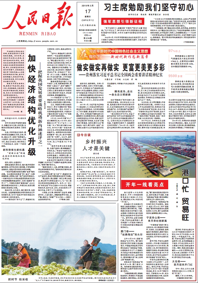 ????人民日報2019年2月17日頭版