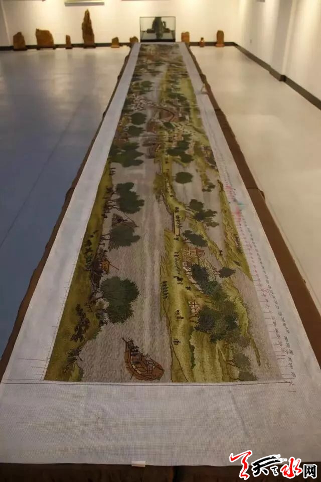 天天天水網(wǎng)訊 近日,武山縣洛門鎮(zhèn)農(nóng)家女鄧六妹花了8年時(shí)間用十字繡繡出了6米長(zhǎng)卷“清明上河圖”,這件作品近日在武山縣博物館文創(chuàng)展廳展出,該十字繡畫卷長(zhǎng)600cm(畫芯部分560cm),寬74cm(畫芯部分55cm),繡線和底布均為純棉材質(zhì),共用了79種顏色的線,光樣圖就有124頁(yè)。
