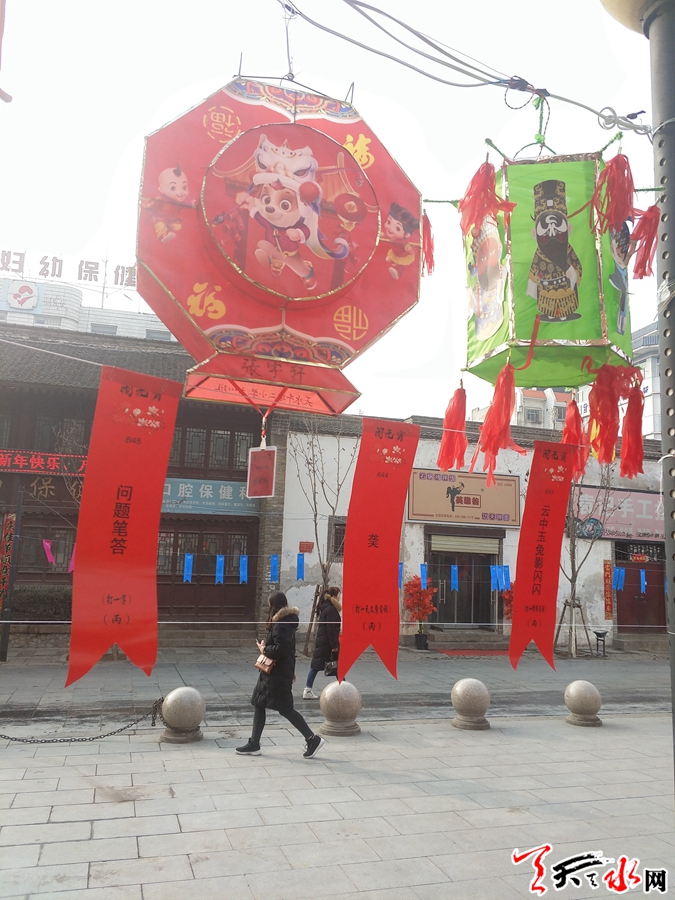 從2月18日到20日(農(nóng)歷正月十四到十六日),市民信步秦州區(qū)自由路玉蘭古巷,一定會(huì)被古巷兩邊色200余盞彩絢麗的彩燈和7000余條七色謎條所吸引,徜徉在燈謎的世界里。