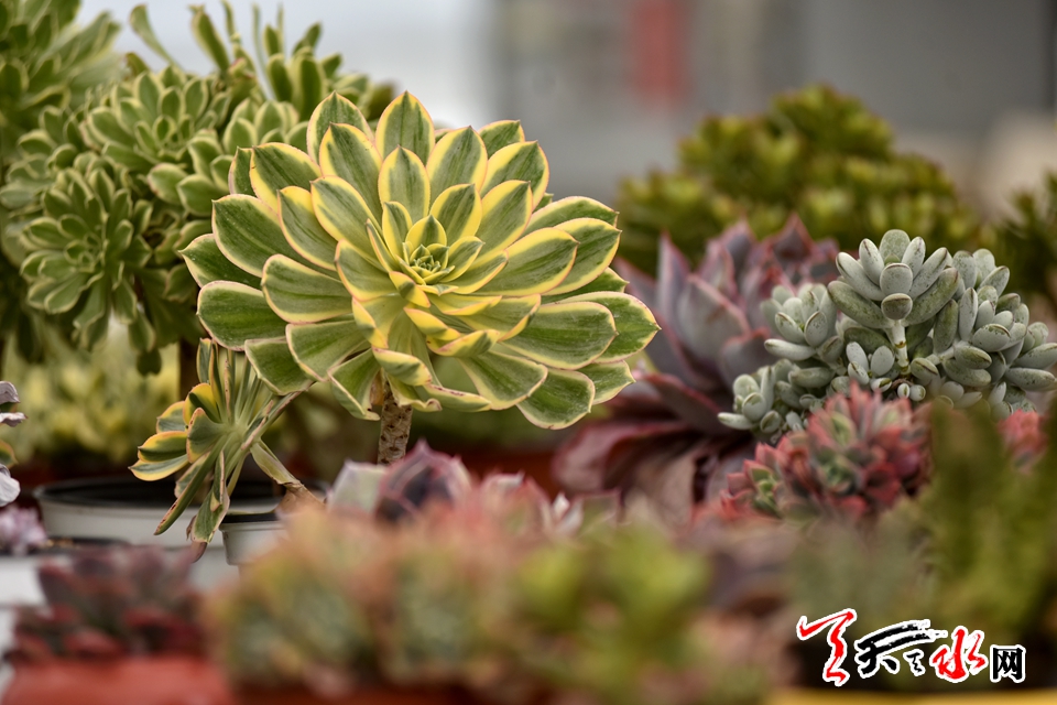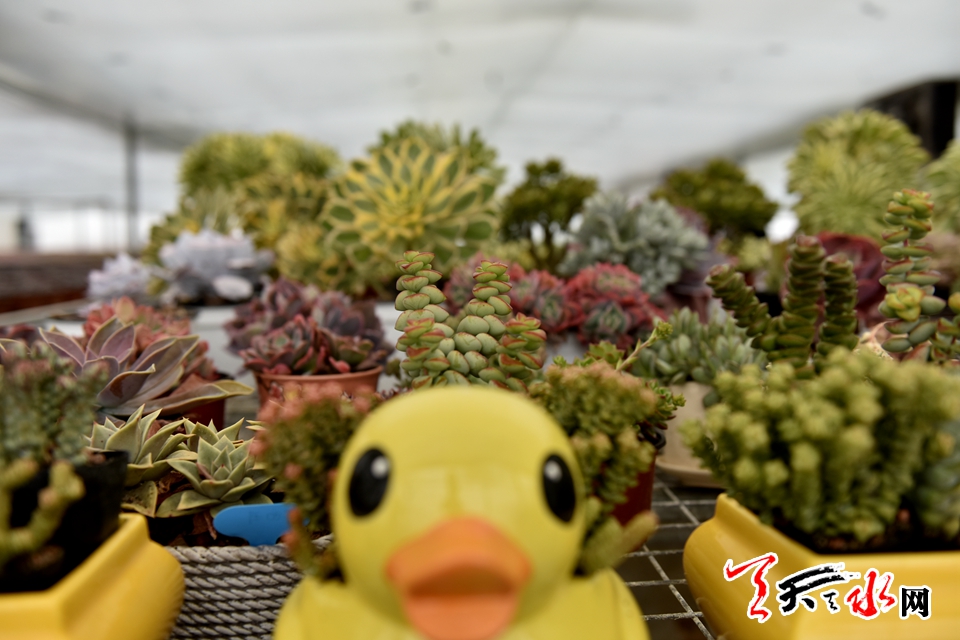 隨后,記者又來到了新引進的甘谷多肉專業(yè)合作社,走進多肉大棚,那可真是賞心悅目,棚內(nèi)春意盎然,完全感受不到初春的寒意。放眼一望,50萬株成排成片的肉肉像集合的隊伍一樣,整整齊齊地種在方型塑料格子里。據(jù)甘谷多肉專業(yè)合作社負責(zé)人康志偉介紹,多肉大棚占地約9畝,他是2017年10月開始在甘谷試點種植多肉植物的,他手里有300多個品種,在甘谷種植有70多個品種,甘谷氣候環(huán)境好十分適合多肉植物的種植生長,試點這一年來銷售額達150多萬元。