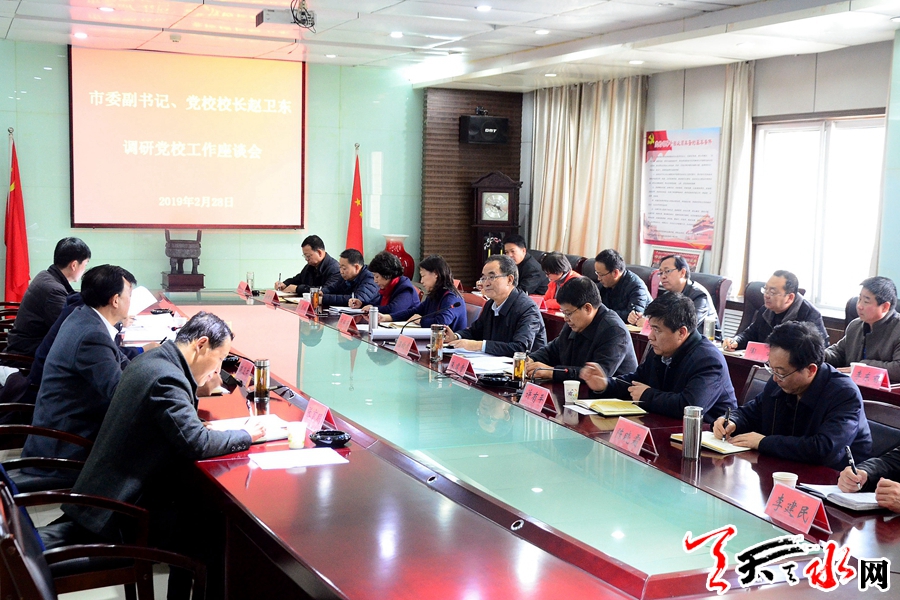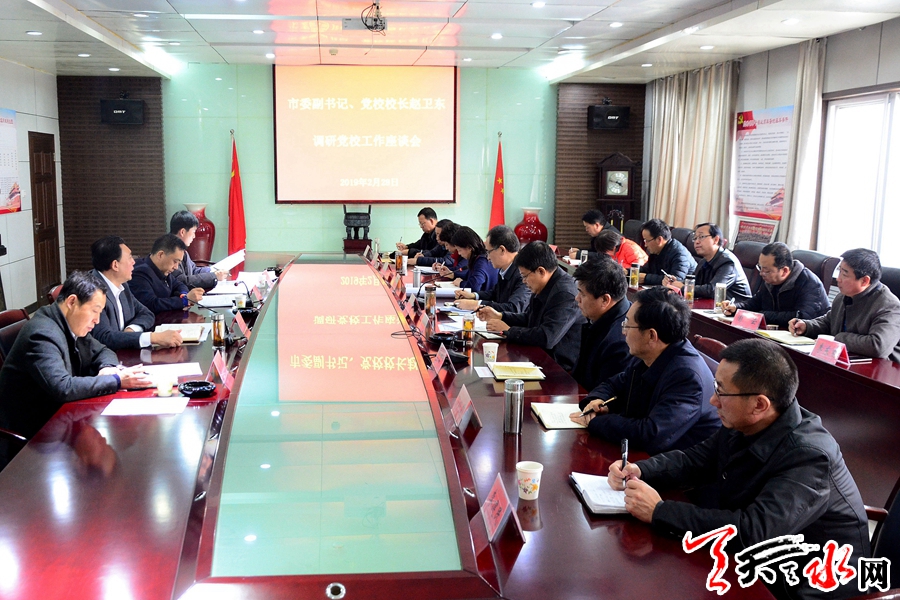 天天天水網(wǎng)訊【全媒體記者 王曉馨】2月28日,天水市委副書記、市委黨校校長(zhǎng)趙衛(wèi)東到市委黨校調(diào)研。他強(qiáng)調(diào),要始終堅(jiān)持黨校姓黨原則,牢牢把握正確辦學(xué)方向,強(qiáng)化管理、創(chuàng)新機(jī)制,切實(shí)提升辦學(xué)質(zhì)量和水平,努力把市委黨校建成全市黨員干部理論武裝、黨性鍛煉的主陣地。