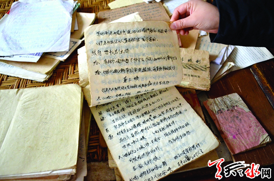 張德新將“作業(yè)本”小心翼翼的從抽屜里取出,然后邊翻邊給記者說“刻”劇本的時光?!拔掖蛏鲜兰o七十年代就開始寫這些劇本了,寫下來的都是我學的新戲,當時只要一學新戲,就趕緊寫下來,所以紙也不講究?,F在,有些劇本時間太久了,要么破損了、要么字糊了,不過我心里可亮清著呢?!?/p>