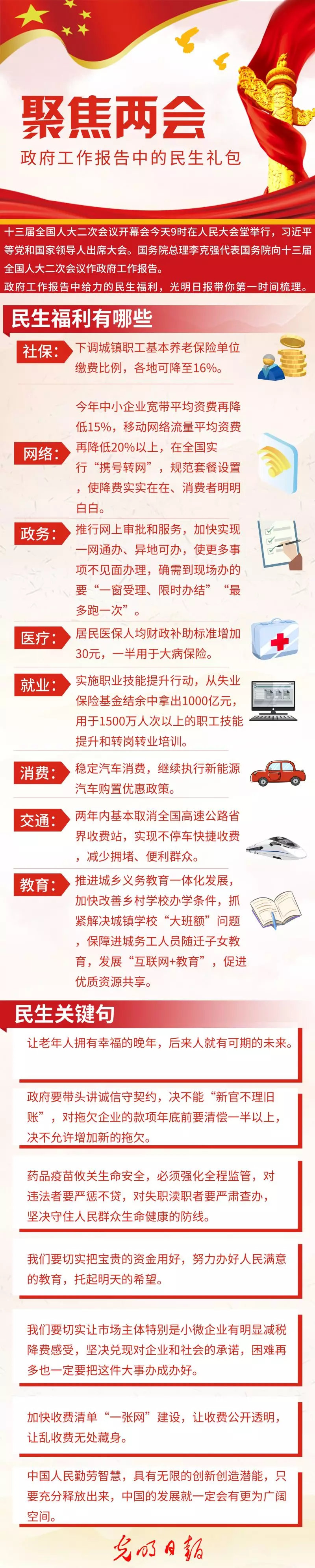 政府工作報(bào)告中給力的民生福利,光明日報(bào)帶你第一時間梳理。