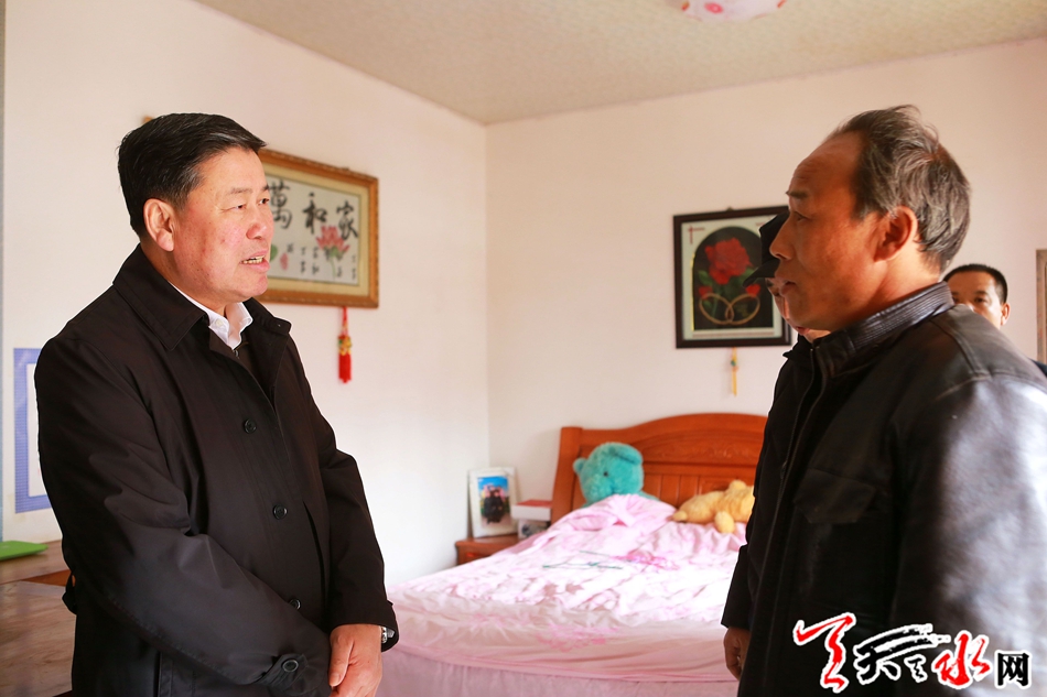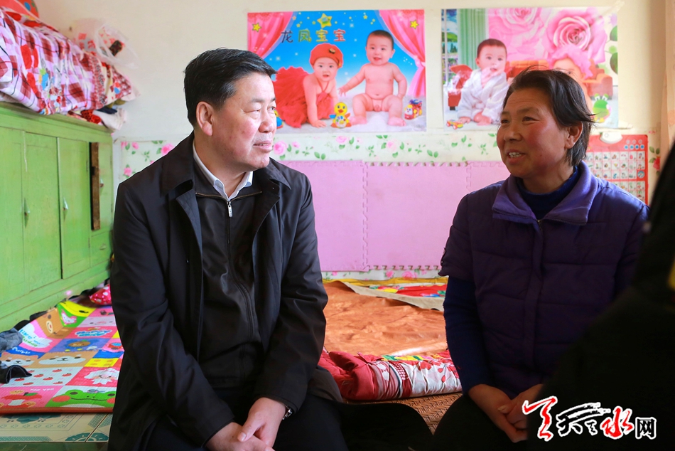 秦州區(qū)娘娘壩鎮(zhèn)白音村,大門鎮(zhèn)王溝村、陰灣村和汪川鎮(zhèn)銀河村都是深度貧困村,地理位置偏遠,貧困發(fā)生率高,脫貧攻堅任務(wù)重、難度大。當天,王軍一行隨機入戶到黃世禮、王保田、李貴平、趙小娟等17戶貧困戶家中,認真察看了解住房、吃水、取暖等情況,仔細詢問致貧原因、上學就醫(yī)、產(chǎn)業(yè)發(fā)展以及扶貧政策到村到戶落實等方面的情況。王軍強調(diào),要立足貧困村貧困戶實際,完善落實“一戶一策”各項舉措,因地制宜加快發(fā)展特色產(chǎn)業(yè),大力開展農(nóng)村人居環(huán)境整治,不斷提高脫貧攻堅工作的質(zhì)量和水平,以敢死拼命的精神向貧困發(fā)起總攻,堅決打贏打好精準脫貧攻堅戰(zhàn)。