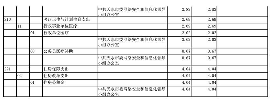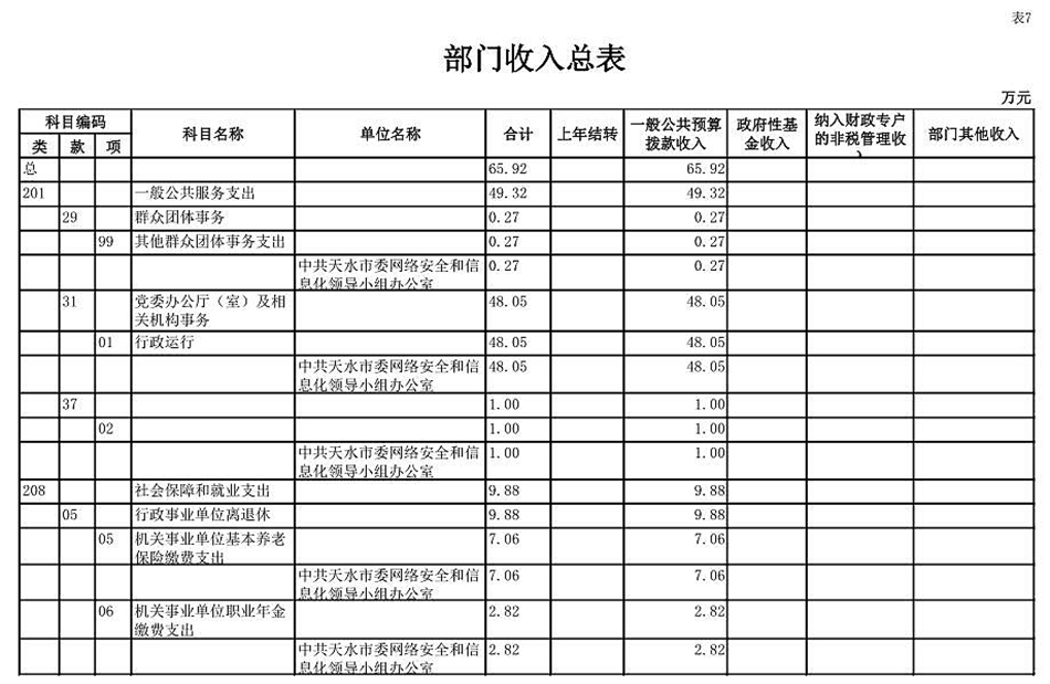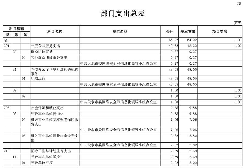 按照《預算法》、《地方預決算公開操作規(guī)程》、《中共甘肅省委辦公廳 甘肅省人民政府辦公廳關于進一步推進預算公開工作的實施方案》、《天水市市委市政府<關于進一步推進預算公開工作的實施方案>》,現(xiàn)將2019年部門預算公開如下:
