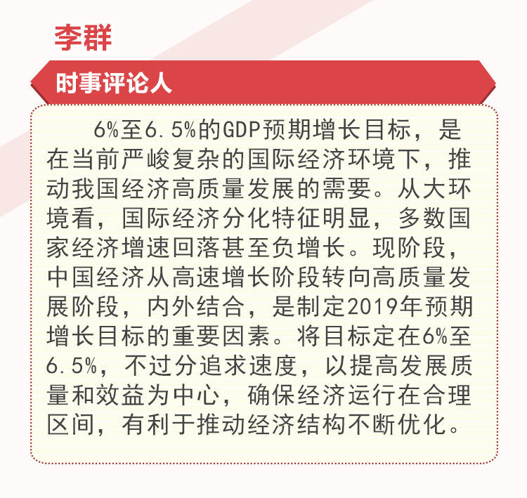 3月5日上午9時(shí),十三屆全國人大二次會(huì)議在人民大會(huì)堂開幕,國務(wù)院總理李克強(qiáng)向大會(huì)作政府工作報(bào)告,并提出2019年經(jīng)濟(jì)社會(huì)發(fā)展的主要預(yù)期目標(biāo)——