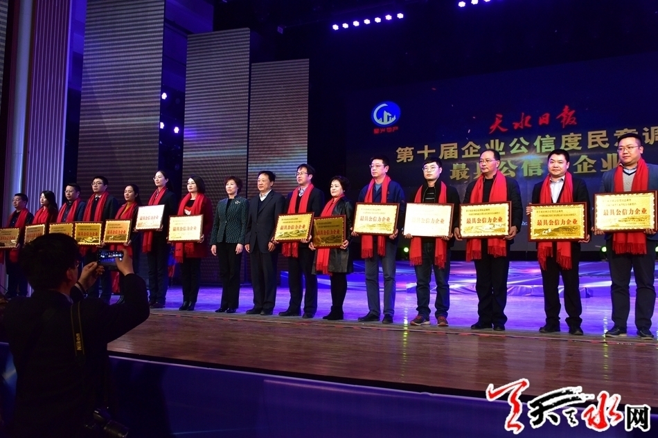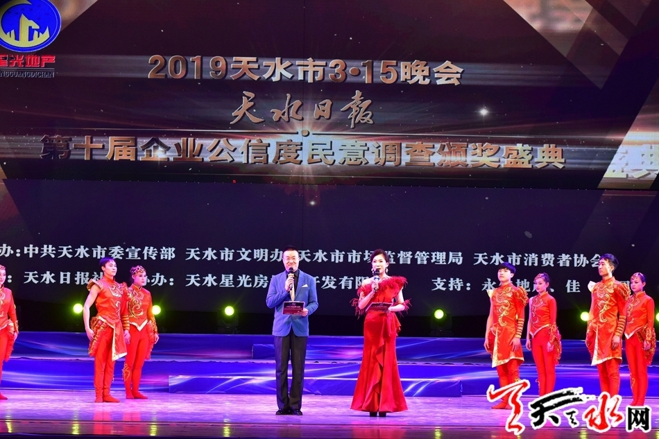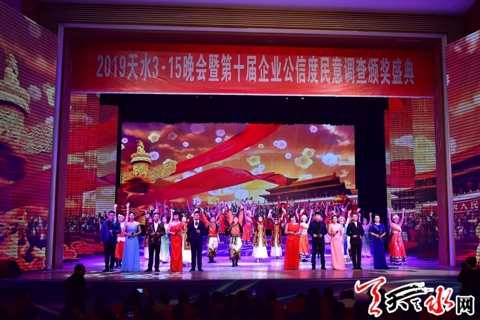 ????3月15日晚,由市委宣傳部、市文明辦、市市場(chǎng)監(jiān)督管理局、市消協(xié)主辦,天水日?qǐng)?bào)社承辦的2019天水市“3?15”晚會(huì)暨《天水日?qǐng)?bào)》第十屆企業(yè)公信度民意調(diào)查頒獎(jiǎng)盛典在秦州大劇院隆重舉行。