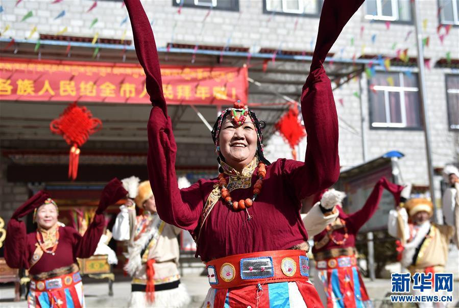 2月5日,拉薩阿壩林卡社區(qū)群眾慶祝春節(jié)和藏歷新年。新華社記者 覺果 攝