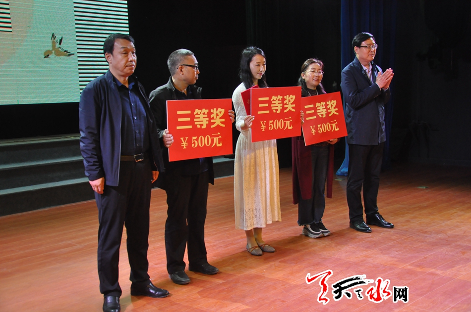 (原天水市人大副主任鄧炎喜、蕭菡為二等獎(jiǎng)獲得者頒獎(jiǎng))