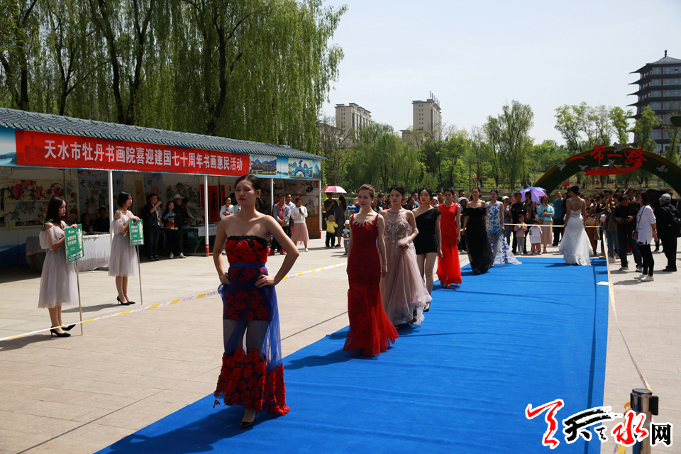 當(dāng)天,麥積區(qū)翠湖公園和馬跑泉公園迎來(lái)了一群“美麗”的客人。優(yōu)雅性感的模特身穿浪漫禮服,時(shí)而漫步在湖邊、船上,時(shí)而徜徉于郁金香花海中,走秀時(shí)、游園間,舉手抬眸驚了芳華,無(wú)不展現(xiàn)著東方女性的溫婉及典雅;活潑可愛(ài)的小朋友們?cè)诨▍仓袣g歌笑語(yǔ),舞姿稚雅動(dòng)人,歌聲清澈明亮,精彩的才藝表演,讓他們猶如翩翩精靈……環(huán)顧四周,舞臺(tái)一旁艷麗的花朵兒已躍然紙上,執(zhí)筆者正熟練的揮毫,而不遠(yuǎn)處隨風(fēng)搖曳的花海似在為節(jié)目伴奏,更似為舞臺(tái)上別樣的“色彩”傾倒。悠揚(yáng)的樂(lè)曲和陣陣掌聲交替,讓如織的游人紛紛駐足于此,也將此次郁金香花卉展推向高潮。