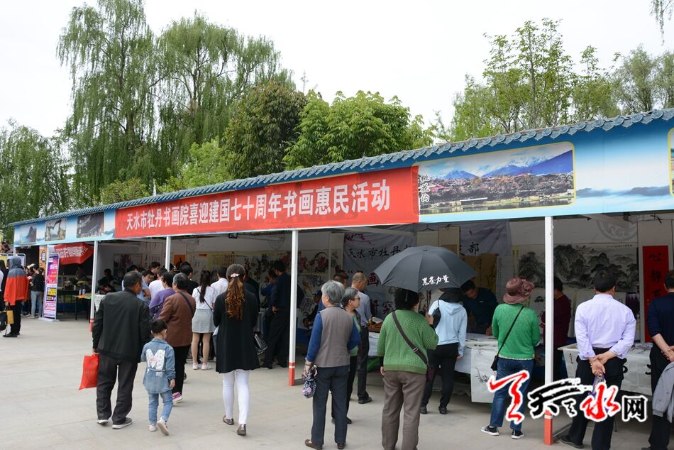 麥積區(qū)第三屆郁金香展書(shū)畫(huà)作品展和天水市牡丹書(shū)畫(huà)院喜迎建國(guó)七十周年書(shū)畫(huà)惠民活動(dòng)也為花卉展增添了一抹亮麗色彩,在游園賞花的同時(shí),也能近距離看到各位書(shū)畫(huà)愛(ài)好者現(xiàn)場(chǎng)作畫(huà),感受到中國(guó)傳統(tǒng)文化的魅力。