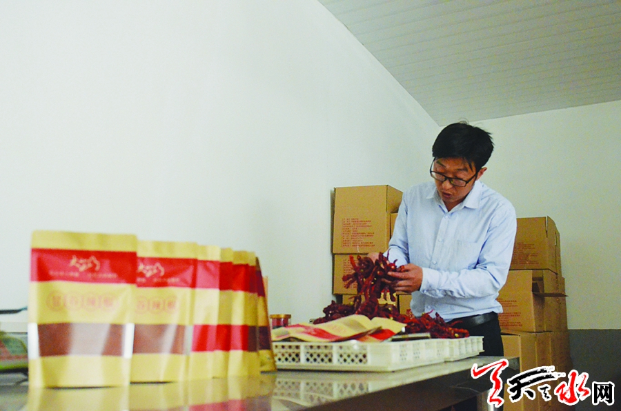 “我要特別向大家推薦我們的‘北山紅’、‘大北山’兩個(gè)辣椒品牌?!蓖鮿偨榻B說,康家灘村所在的北山區(qū)域是種植辣椒的最佳區(qū)域,出產(chǎn)的辣椒不僅個(gè)大而且味道鮮美。但長(zhǎng)年以來(lái),由于技術(shù)、后續(xù)加工等跟不上的原因,沒有形成規(guī)模和品牌優(yōu)勢(shì)。正是基于此,在經(jīng)過詳細(xì)調(diào)查研究后,王剛從辣椒種植基地、辣椒育苗基地以及辣椒加工和銷售入手,成立了甘谷縣康美辣椒加工有限公司,注冊(cè)了“北山紅”、“大北山”兩個(gè)辣椒品牌,建成了辣椒種植基地300余畝,辣椒育苗基地18畝,并與蘭州靈犀公司簽訂了網(wǎng)上代銷合同,有效增加了農(nóng)戶收入。