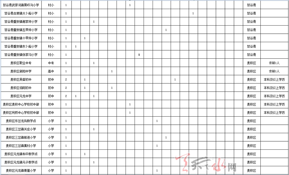 天水市2019年農(nóng)村義務(wù)教育階段學(xué)校教師特設(shè)崗位計劃招聘崗位表