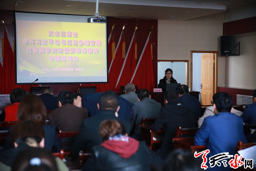 天天天水網(wǎng)訊【記者姬旺芳】5月7日,天水日報社邀請市委黨校副教授徐淑芳就學(xué)習(xí)貫徹習(xí)近平總書記在參加十三屆全國人大二次會議甘肅代表團審議時的重要講話精神作了題為《奮力開創(chuàng)全市脫貧攻堅新局面》的專題培訓(xùn)。
