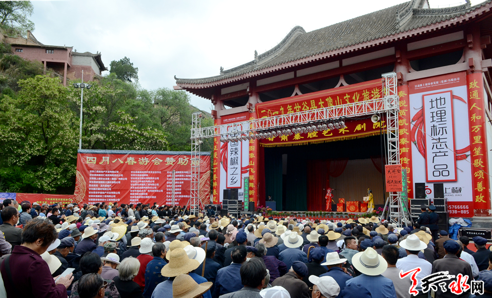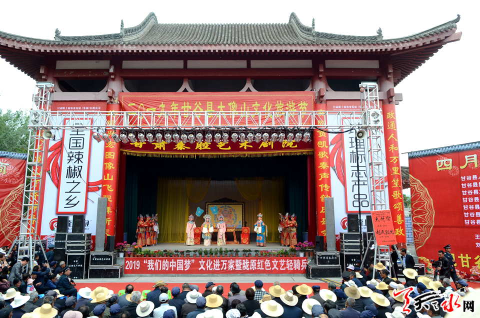 天天天水網(wǎng)訊【記者 張文都】生旦凈丑亮風(fēng)采,唱念做打入戲來。從5月8日至13日,來自中國戲曲“梅花獎”獲得者和甘肅省秦劇院的實力派演員在將大像山舞臺爭奇斗艷,競綻芳菲。5月8日,作為2019年甘谷縣大像山文化旅游節(jié)系列活動之一的秦腔公演在甘谷縣渭水之濱、大像山腳下開鑼。