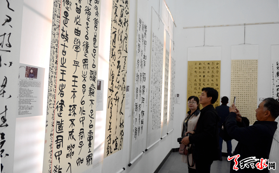 據(jù)悉,此次展覽薈萃了甘谷籍25名中書協(xié)、中美協(xié)會員的書畫作品42件,征集到已故書法家魏學(xué)文、王煥新書法作品4件,甘谷籍中美協(xié)會員趙萬順美術(shù)作品1件,特邀甘谷籍原中國人民解放軍甘肅省軍區(qū)副司令員張臣剛作品1件。
