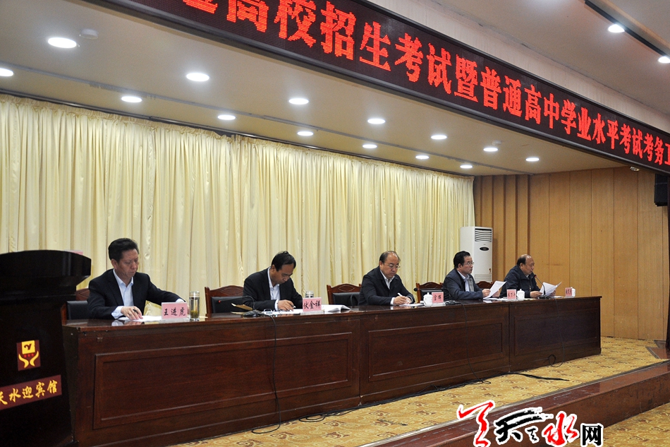 ????天天天水網(wǎng)訊【全媒體記者 馮麗娟】5月27日,市招生考試委員會(huì)召開2019年全市普通高校招生考試暨普通高中學(xué)業(yè)水平考試考務(wù)工作會(huì)議,全面安排部署今年全市普通高考、學(xué)考考試安全及考務(wù)工作。市委常委、副市長宮輝在會(huì)上強(qiáng)調(diào),各縣區(qū)、各職能部門一定要充分認(rèn)識(shí)做好考試安全工作的重大意義,利用考前有限時(shí)間,查漏補(bǔ)缺,完善預(yù)案,盡職盡責(zé)把今年的高考、學(xué)考工作籌劃好、組織好,確保高考、學(xué)考工作安全、平穩(wěn)、順利。