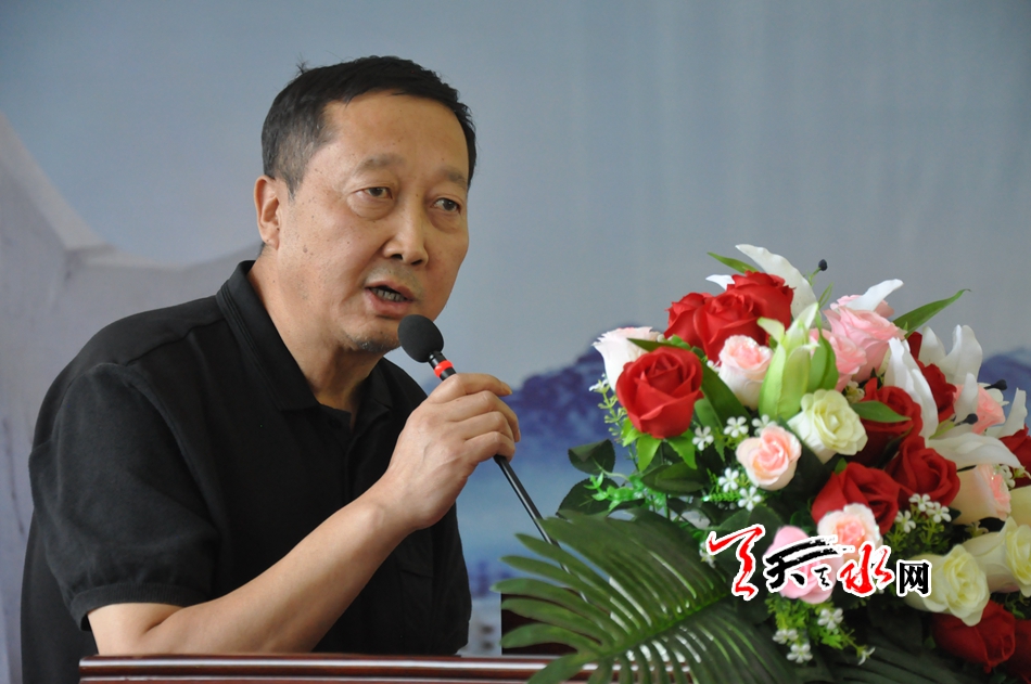????甘肅省社科院副院長(zhǎng)王俊蓮和省文聯(lián)副主席王正茂分別在儀式上致辭。啟動(dòng)儀式由清水縣委副書記、縣長(zhǎng)馬越垠主持。