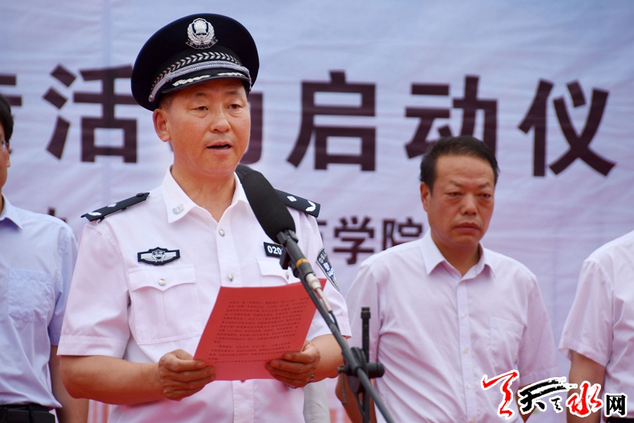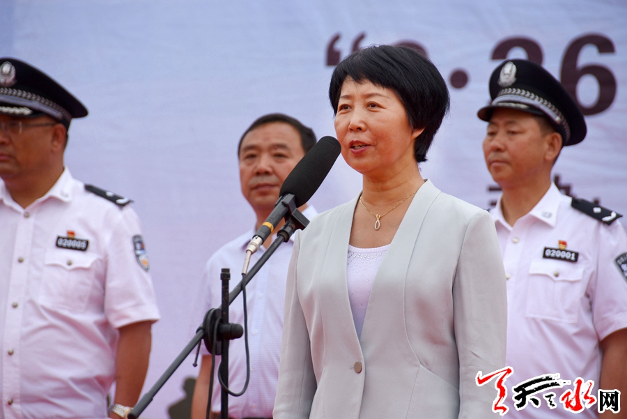 市人大常委會副主任王曉琴宣布宣傳活動開始,副市長、市禁毒委主任、市公安局局長馬瑛講話,天水師范學院黨委書記李正元等領(lǐng)導出席活動。