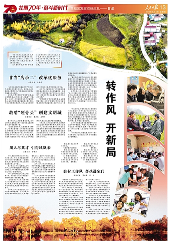 優(yōu)化營(yíng)商環(huán)境,干部爭(zhēng)做“服務(wù)員”;勤栽梧桐樹(shù),招納天下英才;壓實(shí)責(zé)任,強(qiáng)化擔(dān)當(dāng),創(chuàng)建文明城市……堅(jiān)持在實(shí)干中轉(zhuǎn)作風(fēng),甘肅引導(dǎo)廣大干部群眾以“人一之我十之、人十之我百之”的精神和毅力,書(shū)寫(xiě)富民興隴新篇章。