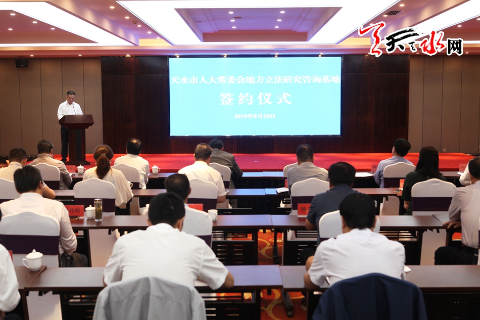 ????天天天水網(wǎng)訊【全媒體記者馬放】8月29日,市人大常委會(huì)與蘭州大學(xué)法學(xué)院等4所院校舉行地方立法研究咨詢基地簽約儀式。市人大常委會(huì)主任蔣曉強(qiáng)出席簽約儀式并講話。他強(qiáng)調(diào),建立地方立法研究咨詢基地是市人大常委會(huì)推進(jìn)地方立法工作的重大舉措,對(duì)于提高我市地方立法質(zhì)量具有十分重要的意義。希望四所院校發(fā)揮各自優(yōu)勢(shì),積極參與我市地方立法工作,為天水地方立法當(dāng)好高參、發(fā)揮“智庫(kù)”作用。