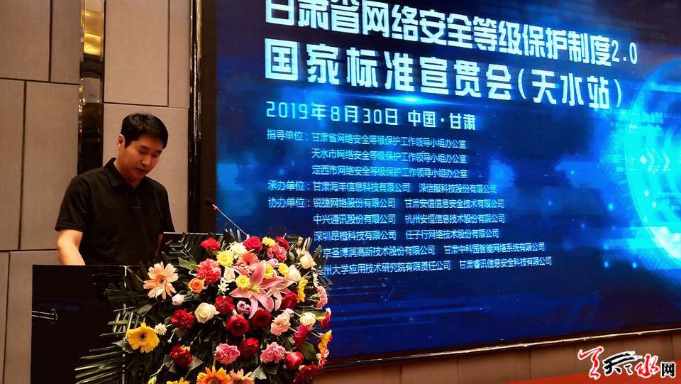 天天天水網(wǎng)訊【記者 張文都】8月30日,甘肅省網(wǎng)絡(luò)安全等級(jí)保護(hù)制度2.0國(guó)家標(biāo)準(zhǔn)宣貫會(huì)(天水站)在天水市秦州區(qū)皇城國(guó)際飯店召開(kāi)。甘肅省網(wǎng)絡(luò)安全等級(jí)保護(hù)工作領(lǐng)導(dǎo)小組辦公室負(fù)責(zé)人、天水市公安局有關(guān)負(fù)責(zé)人和定西市政府相關(guān)領(lǐng)導(dǎo)和嘉賓,以及邀請(qǐng)的天水和定西市政府機(jī)關(guān)、科研院所、高校、醫(yī)療、金融、企事業(yè)單位的網(wǎng)絡(luò)安全行業(yè)專(zhuān)家學(xué)者、信息化從業(yè)者等200余人出席會(huì)議。