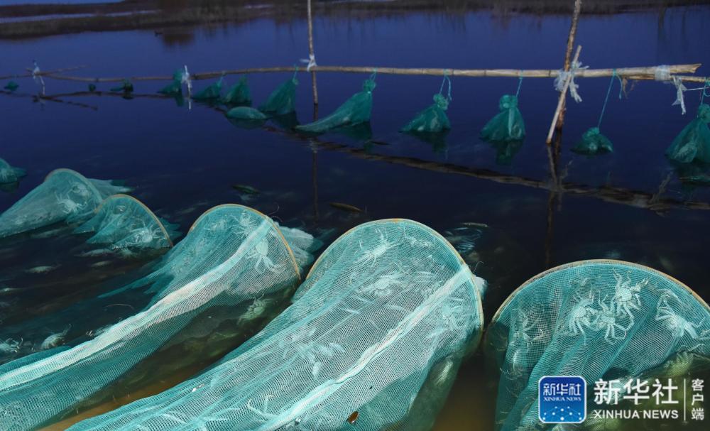 這是9月23日在內(nèi)蒙古自治區(qū)庫布其沙漠里拍攝的人工養(yǎng)殖的螃蟹。新華社發(fā)(貝赫 攝)