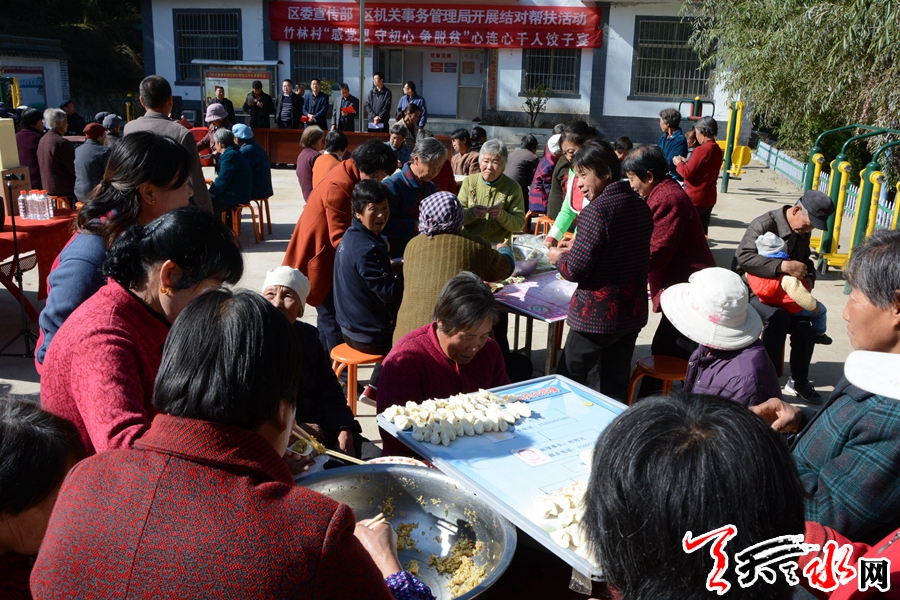 這是當天上午秦州區(qū)委宣傳部、區(qū)機關事務局結合“不忘初心、牢記使命”主題教育,在該村舉行的“感黨恩守初心爭脫貧”心連心千人餃子宴活動。當天,秦州區(qū)委宣傳部、區(qū)機關事務局還開展了為群眾講黨課、慰問老黨員、幫村民打掃衛(wèi)生等活動。