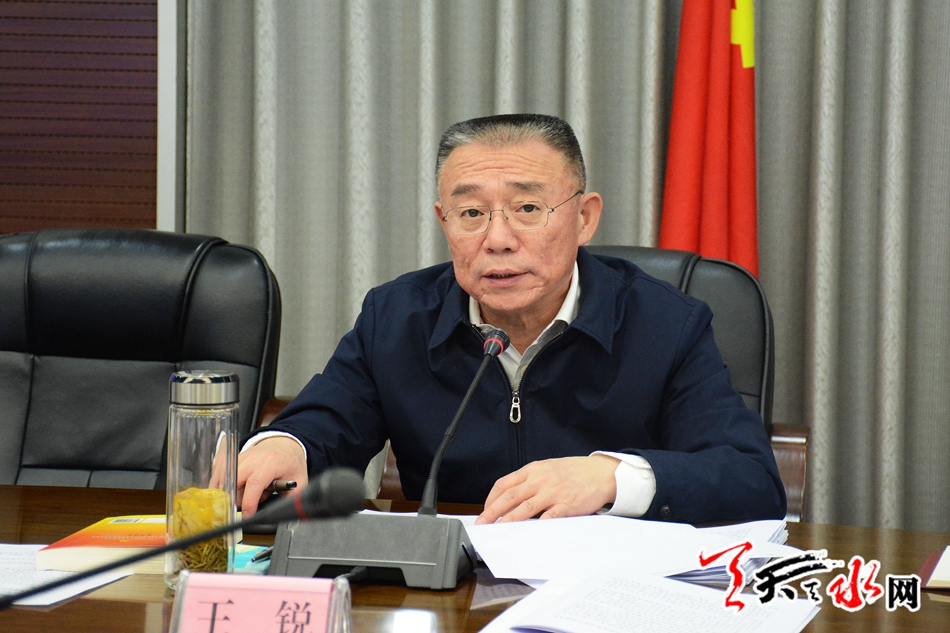 天天天水網(wǎng)訊【全媒體記者 王曉馨】11月20日上午,市委理論學(xué)習(xí)中心組圍繞學(xué)習(xí)貫徹黨的十九屆四中全會(huì)精神開展專題學(xué)習(xí)研討。市委書記王銳主持會(huì)議。省人大教科文衛(wèi)委員會(huì)副主任委員、省人大常委會(huì)教科文衛(wèi)工作委員會(huì)主任、省委“不忘初心、牢記使命”主題教育第六巡回指導(dǎo)組組長范鵬到會(huì)指導(dǎo)。