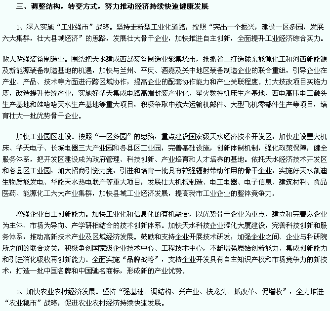 中共天水市委關(guān)于制定國民經(jīng)濟和社會發(fā)展