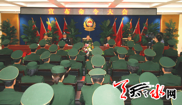 ??? 天天天水網(wǎng)-天水日?qǐng)?bào)訊(記者 王曉馨)4月26日下午,武警天水支隊(duì)召開宣布命令大會(huì),武警甘肅總隊(duì)政治部主任陳杭出席大會(huì)并宣布了武警總隊(duì)、省武警總隊(duì)黨委關(guān)于張江武同志兼任武警天水支隊(duì)第一政委、黨委第一書記的命令。