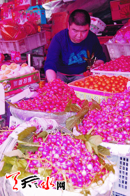 ????在秦州區(qū)光明巷,一水果攤老板告訴記者,目前市場上的洋櫻桃主要是來自陜西,批發(fā)價就在每斤40元以上,再加上運費等,一斤至少得賣五六十元?!耙驗榻衲暄髾烟疑鲜袝r比較貴,很多本來想買一些嘗嘗鮮的消費者都是一問價格就被嚇了回去,所以銷量并不好?!痹摾习灞硎荆驗榻谖沂斜镜氐拇笈餀烟谊懤m(xù)上市了,市面上的洋櫻桃多了起來,所以價格有所下降,估計等半個月后本地大田洋櫻桃上市時,還會便宜。
