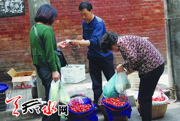 ????9日一大早,記者就在秦州區(qū)花鳥市場門口看到紅中微帶點黃色的土櫻桃被成堆地擺放在柳條編的籃子里,吸引了很多逛早市的消費者購買嘗鮮。從成縣來我市賣櫻桃的李大爺告訴記者,這些土櫻桃都是他們自己種的,因為化肥、運費等一些成本漲價了,所以價格比去年貴了點,目前是5元每斤,按杯買也行,三兩左右的杯子,一滿杯2元錢。