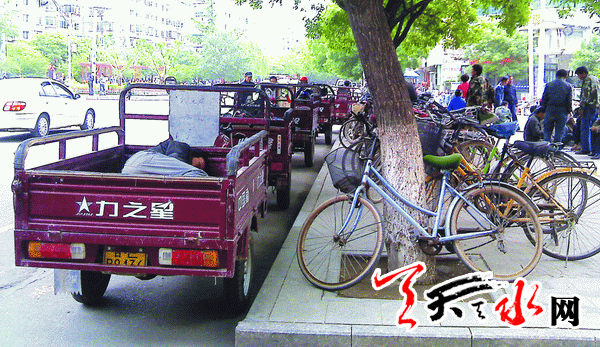 ????圖一:秦州區(qū)合作巷北口成了架子車、三輪車、自行車的自由市場。