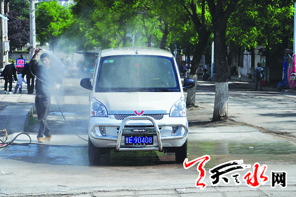 ????圖二:秦州區(qū)濱河西路,洗車生意做到了馬路中間。